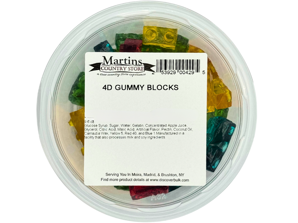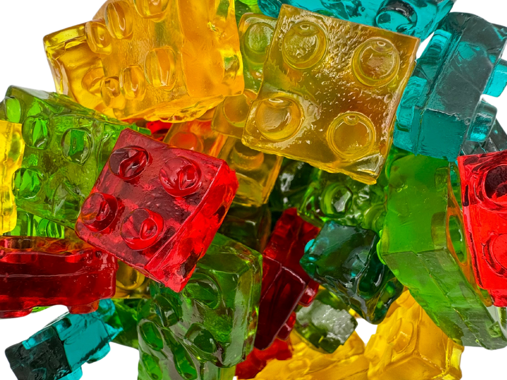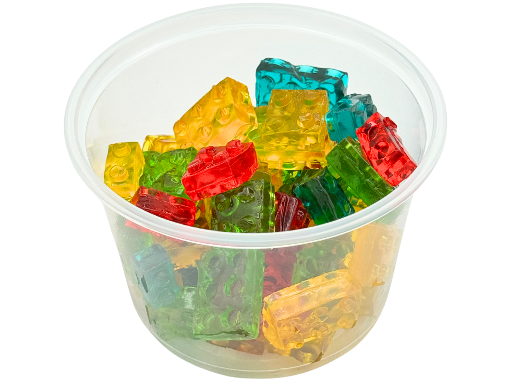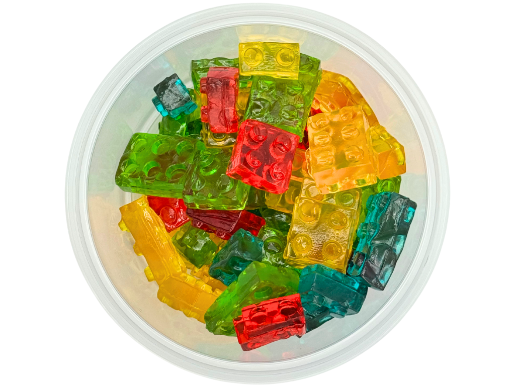 These fun and colorful gummies are shaped like building blocks, offering a unique, playful twist on traditional gummy candies. Each block is crafted to deliver a chewy texture and an assortment of vibrant fruit flavors that will excite your taste buds.