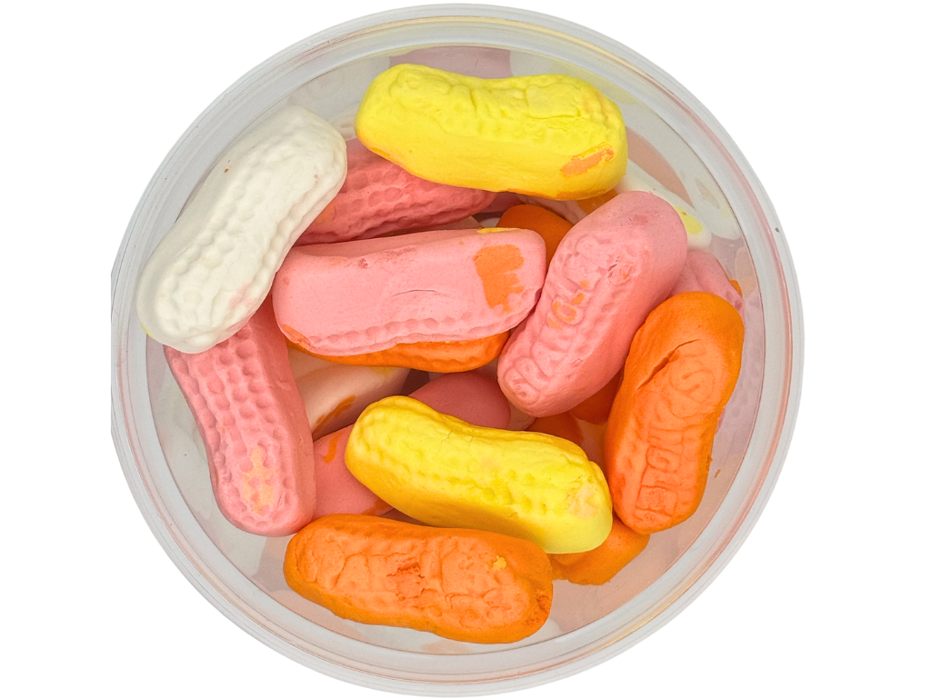 Filled with soft, chewy marshmallow candies shaped like cheerful peanuts, featuring an assortment of eye-catching colors that are as fun to look at as they are to eat.