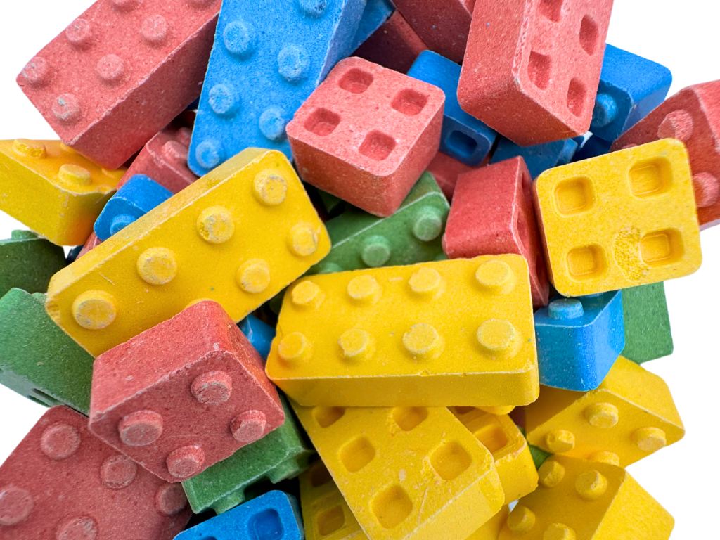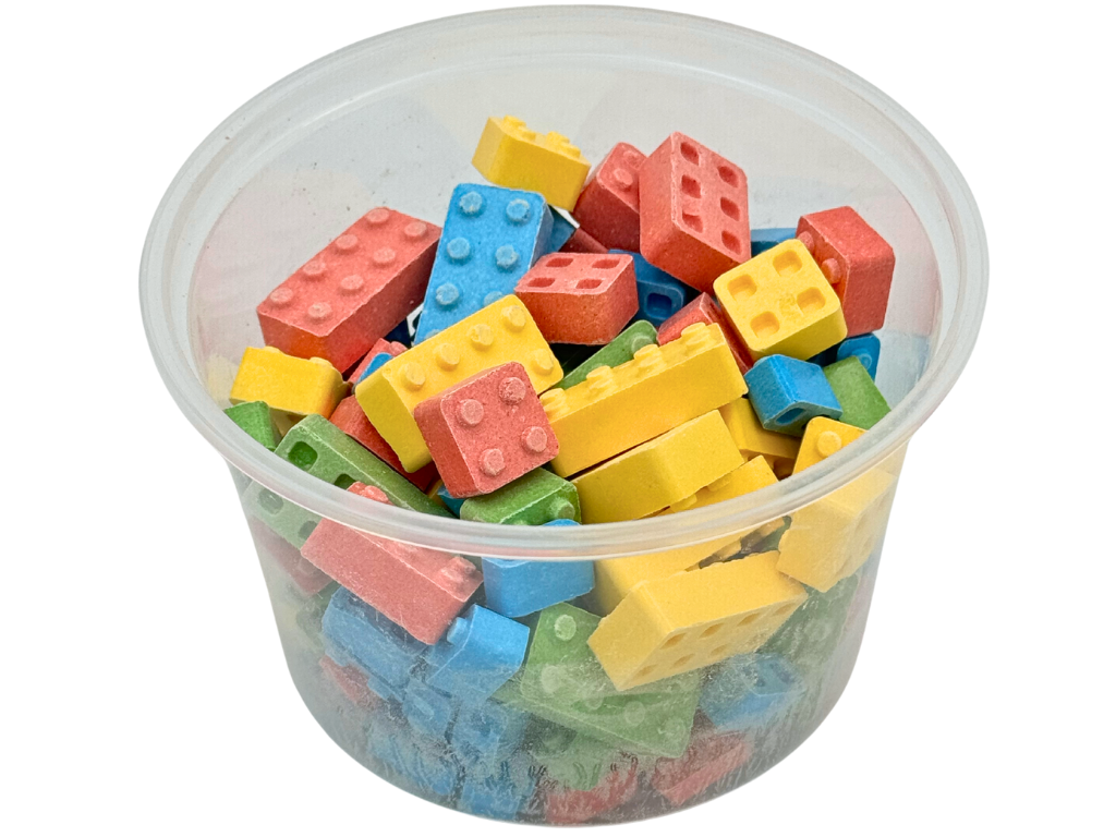 Stackable candy pieces that resemble classic building blocks. Perfect for playful snacking and creative fun, Candy Blox are great for kids' parties, candy buffets, or as a whimsical treat for candy enthusiasts of all ages.