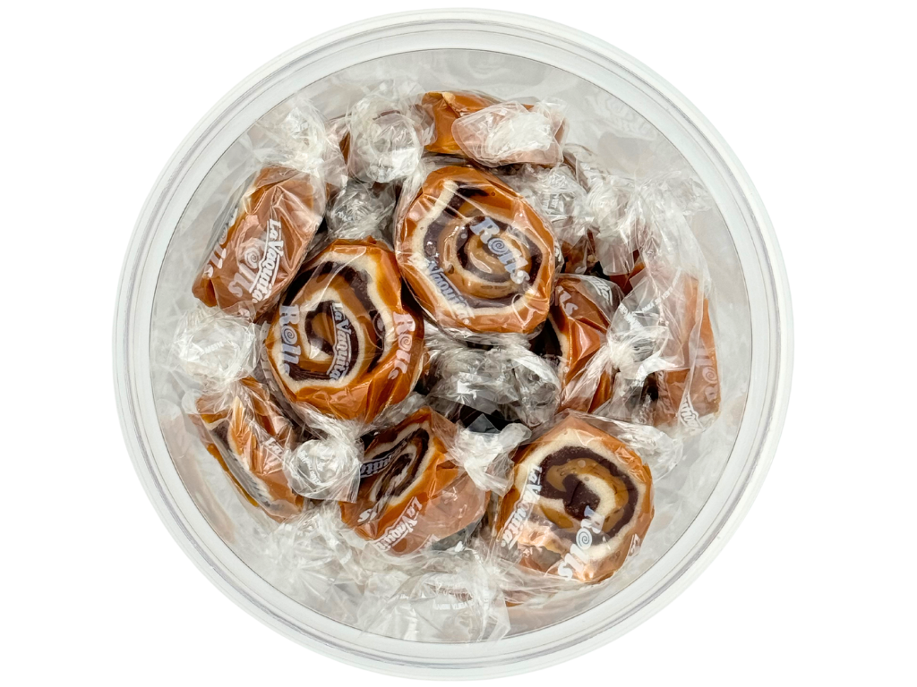 These delectable treats feature a perfect marriage of creamy caramel and velvety chocolate, encased in a soft, chewy roll. Each bite offers a harmonious blend of sweetness and richness, making them a delightful indulgence for any carmel lover.