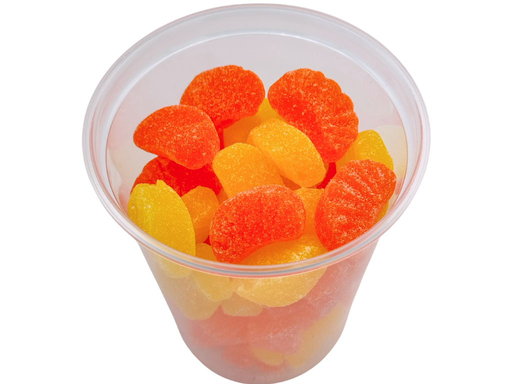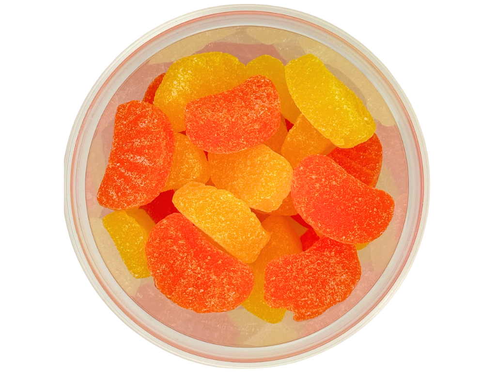 Each slice-shaped gummy is infused with the tangy essence of Orange or Lemon, offering a delightful burst of sweet and sour flavor with every bite.