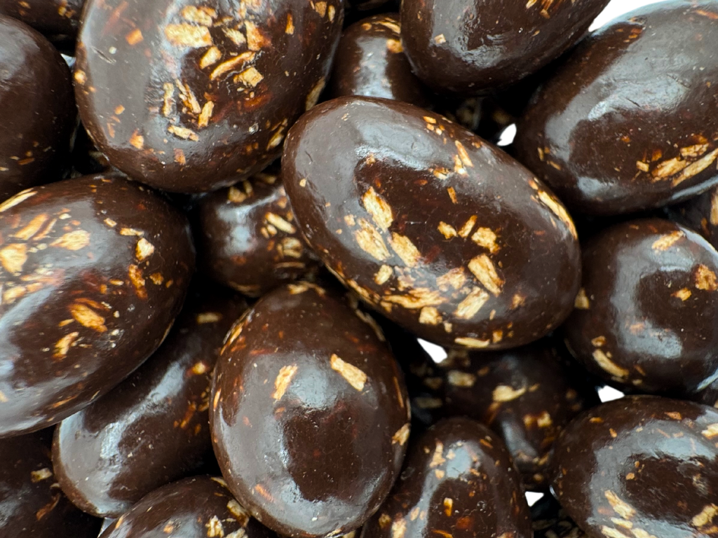 Each piece features a perfectly roasted almond coated in a layer of sweet, shredded coconut, all enrobed in decadent dark chocolate. This indulgent treat offers a luxurious balance of flavors and textures, making it an ideal snack for any occasion.