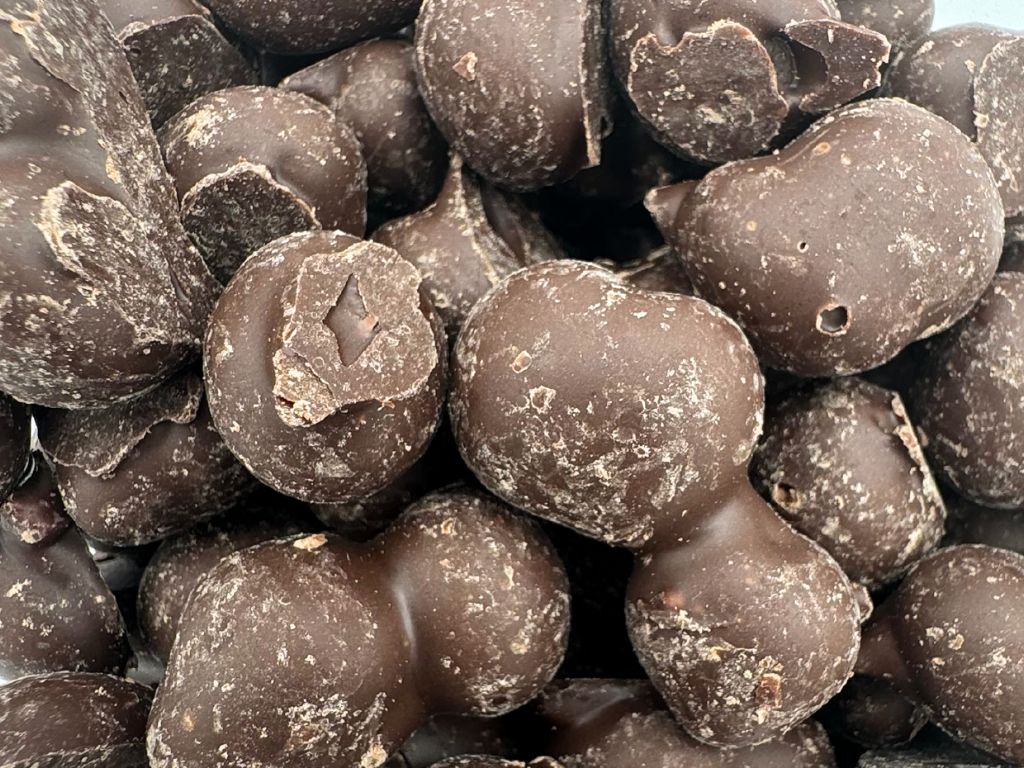 Each peanut is enveloped in a generous layer of velvety dark chocolate, twice dipped to ensure an extra indulgent experience. The rich, bittersweet chocolate perfectly complements the crunchy, savory peanuts, creating a delectable treat that satisfies both sweet and savory cravings.