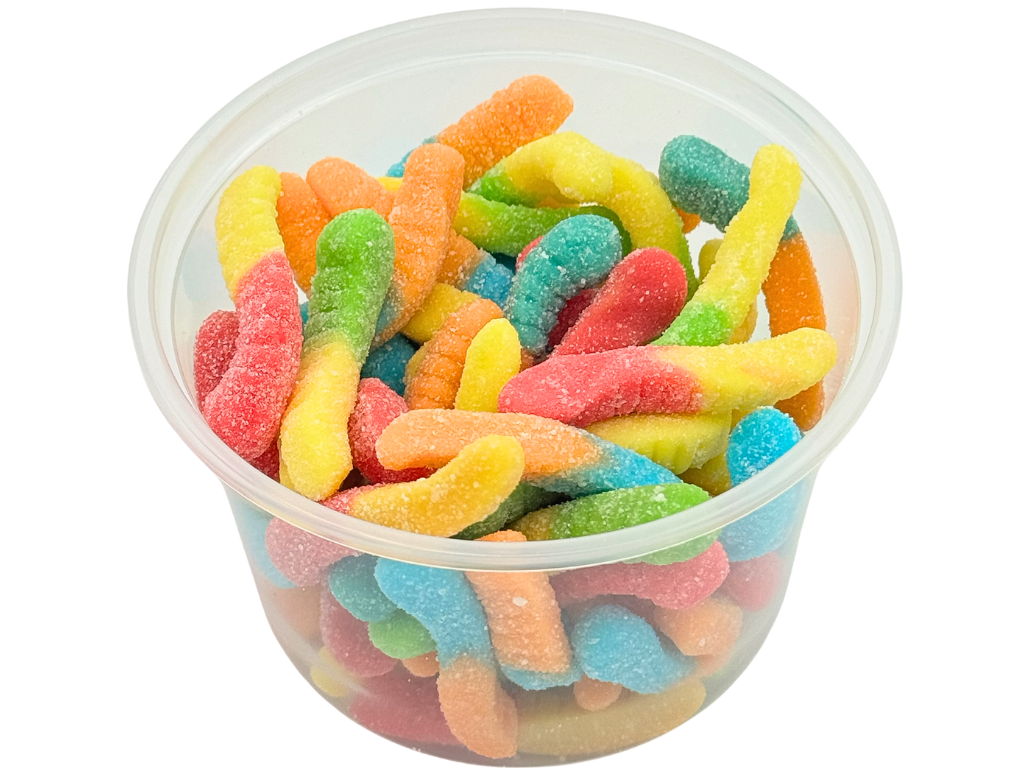 These colorful, bite-sized gummy worms come in a variety of vibrant hues, adding a playful touch to snack time. With a sour coating that packs a zesty punch, they offer a perfect balance of sweetness and tanginess that's irresistible to candy lovers of all ages.